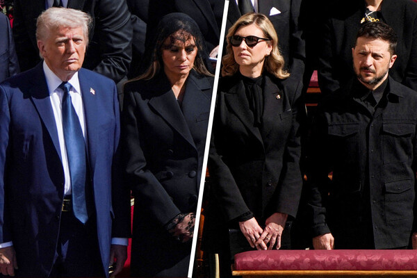 В Ватикане прошли похороны папы Римского Франциска. В обход протокола президент Украины Владимир Зеленский и его супруга сидели на церемонии в первом ряду неподалеку от Дональда Трампа. Зеленский, как и Трамп, нарушил дресс-код — пришел на церемонию в черном кителе. А американский президент выбрал для похорон ярко-синий костюм. Во время похорон папы Римского Франциска в Ватикане некоторые присутствующие там официальные лица серьезно нарушили протокол. Так, президент Украины Владимир Зеленский сидел во время церемонии на первом ряду, хотя должен был занимать более дальнее место, пишет The Telegraph. Согласно протоколу, на траурной церемонии на площади Святого Петра в Ватикане официальные представители стран должны были сидеть по алфавиту (исходили из названий государств на французском языке). Однако Владимир Зеленский вместе с супругой Еленой сидел рядом с президентом Индии Драупади Мурму и венгерским лидером Тамашем Шуйоком. На этом же ряду находились Дональд Трамп (США) и Эммануэль Ма