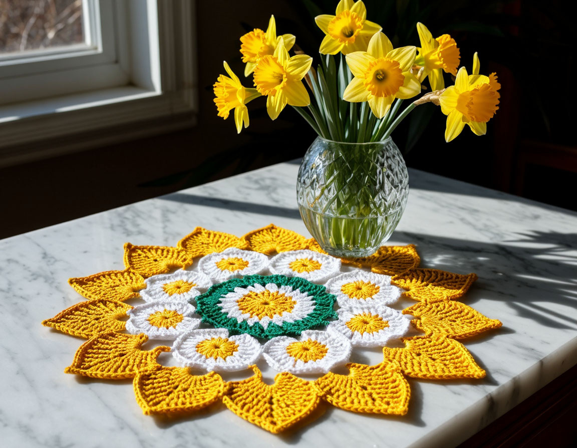 На улице солнечная весна. У нас солнце светит, но очень похолодало. Наверное поэтому так захотелось солнечного настроения и вдохновения. Тепла что ли в цветах и оттенках. Чтобы салфетки грели Душу. Автором всех салфеток является ИИ. Но самым потрясающим является то, что при желании все их можно повторить в реальной жизни.