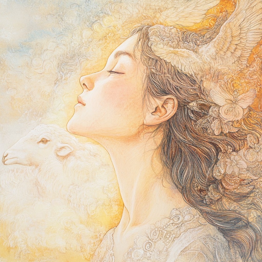 Создано на основе запроса: an illustration of a profile of a woman, beautiful image. Intricate detail. She believes in this scripture: And they have conquered him by the Lamb and by the word of their testimony, for they loved not their lives even unto death. She was lost but now is found and trusts that God loves her. Feels heavenly. Pastel colors --- Автоперевод: Иллюстрация профиля женщины, красивое изображение. Как тебе изображение? 🤔 https://dzen.ru/id/65c0c65c86e4f837c27b24d7 #ИИ #AI #нейросеть #midjourney #art