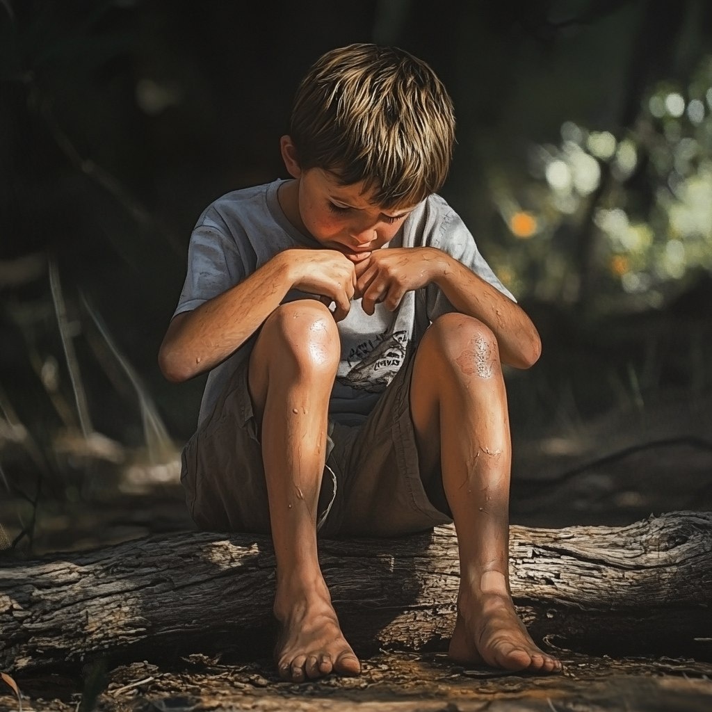Мальчик пожаловался маме на боли в колене после прогулки. Мама, осмотрев ногу, обнаружила там только небольшую царапину.