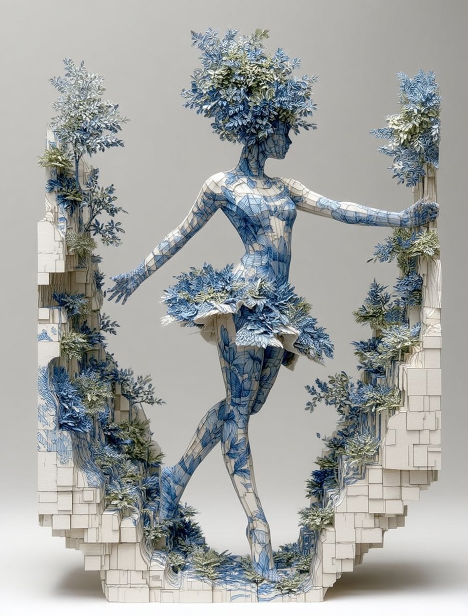 Создано на основе запроса: voxel, 2D woodcut layered lasercut
