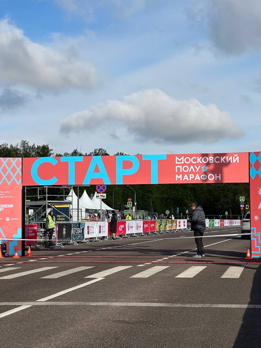 Через эти ворота сегодня пробежит больше 20000 тысяч полумарафонцев⚡️ Погода радует солнцем, а значит, настрой на забег должен быть супер. В стартовом городке уже собираются спортсмены🔥