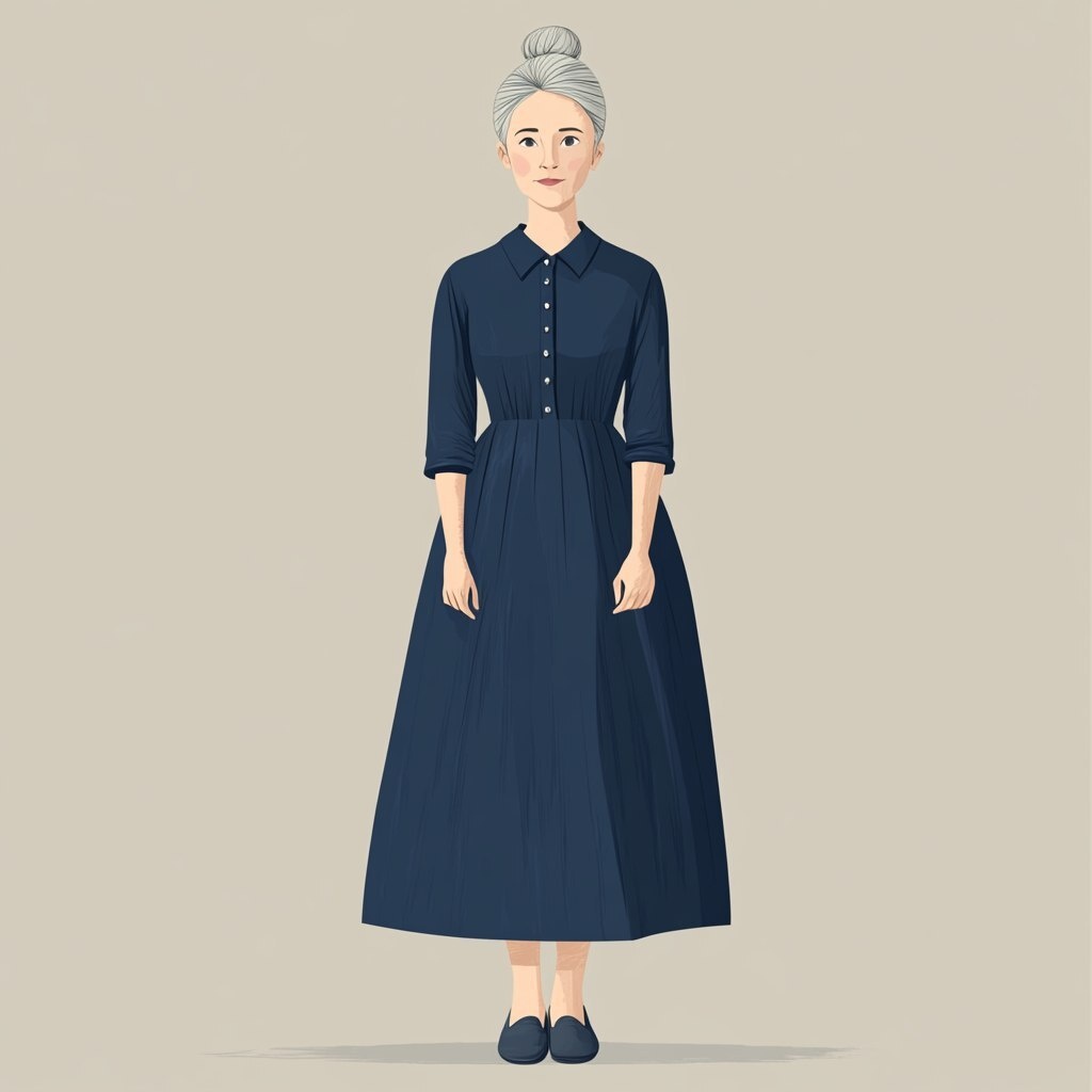 Создано на основе запроса: a full body drawing of a prarie school teacher in blue button up dress. Gray hair with a bun. Looking straight ahead. Adobe Illustrator flat style no shading. Simple shapes. --- Автоперевод: Полный рисунок учителя Prairie School в синем платье на пуговицах. Необычно выглядит? 🤔 https://dzen.ru/id/65c0c65c86e4f837c27b24d7 #ИИ #AI #нейросеть #midjourney #art