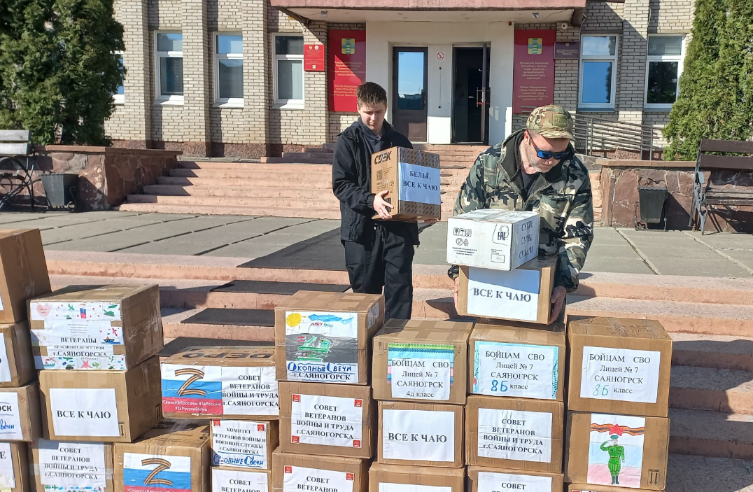 Накануне ко Дню Победы бойцам из Хакасии в зону СВО отправилась новая партия гуманитарной помощи для военнослужащих, собранная жителями республики. Это уже пятая отправка с начала года. К 80-летнему юбилею Великой Победы конвой планирует доставить посылки до адресатов. Саяногорск принимает активное участие в сборе гуманитарки. В этот раз волонтеры “Спицназа” и комитет ветеранов отправили большую партию. В коробках окопные свечи, сухой душ, влажные салфетки, одежда, сухие супы и сухари, печенье и конфеты, чай, кофе, сахар и сухофрукты, тушенка и сгущенка, медикаменты и перевязочный материал, репелленты и газовые горелки, вода, антидроновые одеяла, маскировочные костюмы и сети, ну и конечно письма и открытки от школьников. Для госпиталя постельное белье, одеяла, подушки, памперсы, пелёнки, трости и костыли. По традиции в погрузке помогали ветераны Общероссийской общественной организации “РОССИЙСКИЙ СОЮЗ ВЕТЕРАНОВ АФГАНИСТАНА и СПЕЦИАЛЬНЫХ ВОЕННЫХ ОПЕРАЦИЙ” в Республике Хакасия и студенты