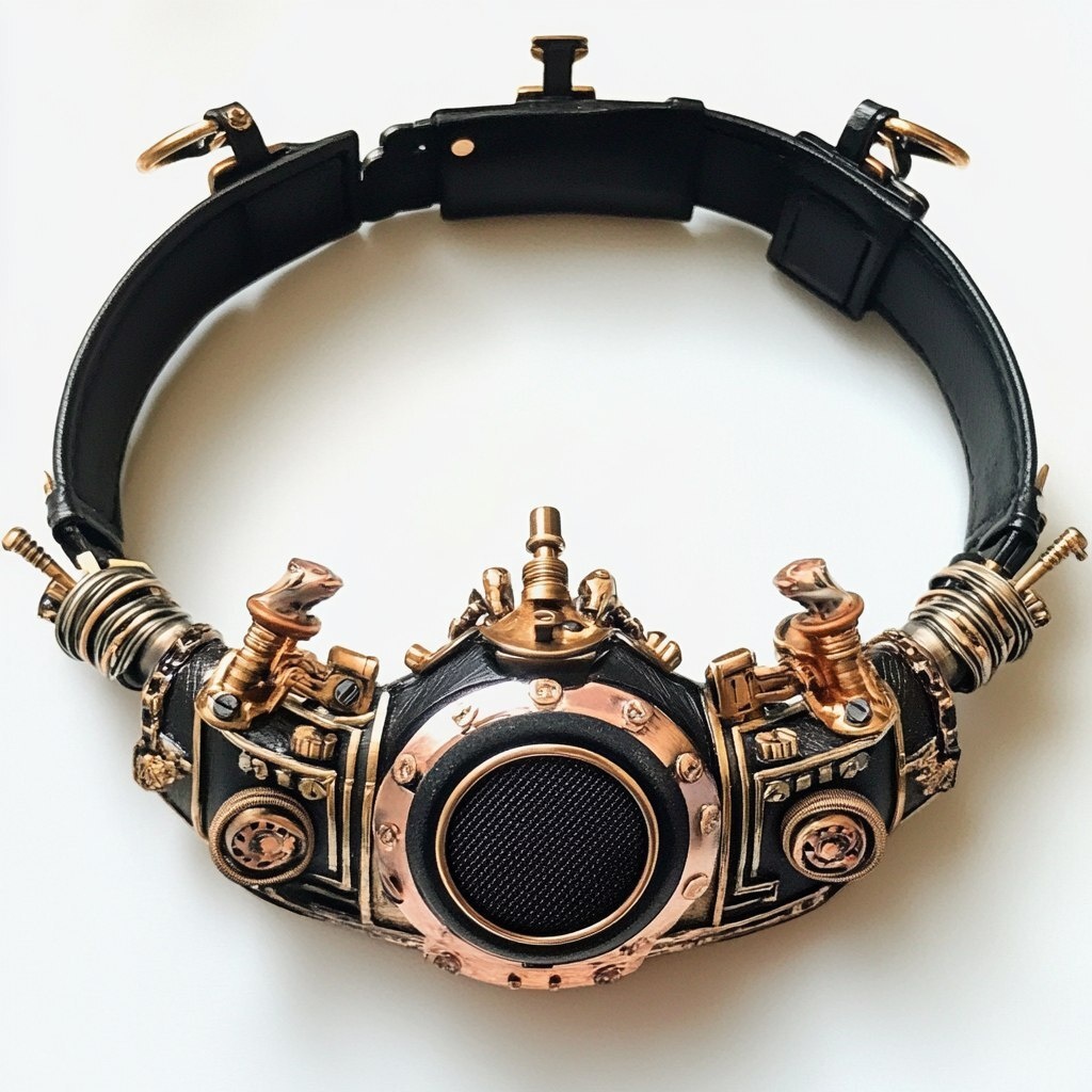 Создано на основе запроса: a steampunk choker neclace with a speaker