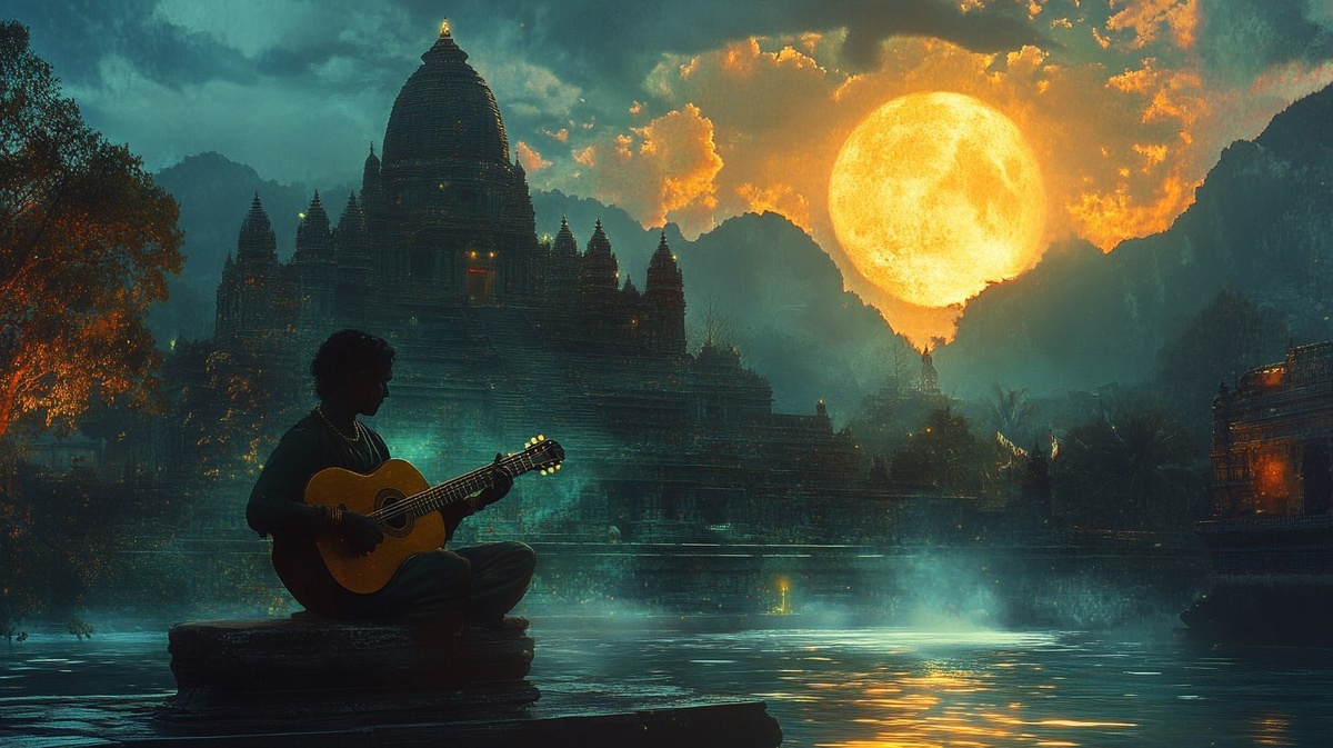 Создано на основе запроса: Hindu Temple, 8K realistic, Music Poster with Sanskrit Background