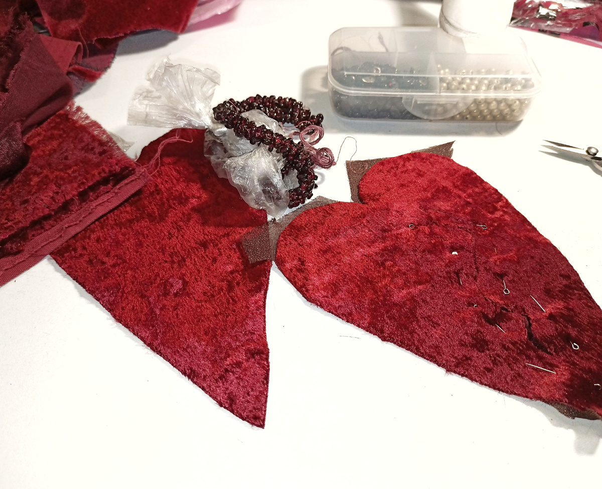 Заметила,что сейчас актуальны броши-сердца. У меня заказ на две. Делаю одну большую,16 см и другую поменьше. Большая из винтажного плюша. Я сделала отверстие,старалась сделать эффект трещины. Подложила шелк и вышила камнями граната. Потом пришила розочки,цветочки,мет.элементы. Сшила и наполнила . Зашиваю отверстие. Эта готова! И вторая брошь. Она 12 см. Бархат. Здесь пришила вязаную салфетку,кусочек.кружево,розочки из шелка и марлевки. Бантик! И немного бусинок. И вот они упакованы. Поедут к хозяйке. Если честно,создание украшений меня отвлекает от шитья. Я разгружаю голову между пошивом. Сейчас в основном ткани идут, а я их не очень люблю. Лучше бы куртец кожаный пошила. Но,шью, что дают. Есть в плане пошив детских нарядов младшим внучатым племяшкам. И себе кое какие тряпочки прикупила,надо шить! А вы как время проводите? К лету готовы?