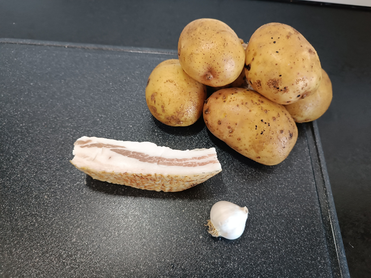 Здравствуйте, дорогие друзья! Сегодня предлагаю приготовить "Картофельные лодочки с салом". Можно для этого блюда взять вместо сала копчёную грудинку или бекон, но мне нравится именно такой вариант. К тому же готовить это блюдо Нам понадобятся: Картофель, Сало, Чеснок, Растительное масло для смазывания формы, Соль. Картофель тщательно моём, немного солим и отвариваем его прямо "в мундире" около 15 минут. Он должен почти полностью свариться, но держать форму, не разваливаться. В это время сало нарезаем кубиком. Если шкурка плотная - её лучше удалить. Чеснок мелко измельчаем. Затем кастрюлю с картофелем ставим под проточную холодную воду, чтобы он быстро охладился. Отваренные клубни достаем, обсушиваем, разрезаем вдоль пополам. Ножом или чайной ложкой аккуратно удаляем из картофельных половинок сердцевину, придавая форму лодочек. То, что вынули, измельчаем кубиком, смешиваем с салом и чесноком, перемешиваем. Полученную смесь раскладываем по "лодочкам", немного прижимая начин