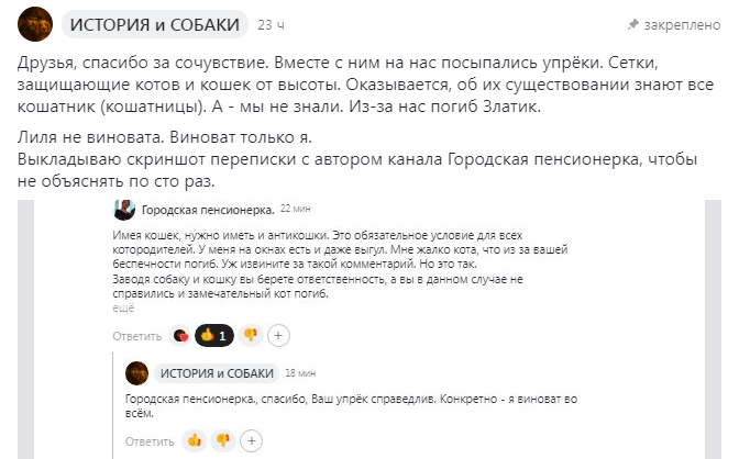 Я убеждён в своей правоте, и поэтому благодарю всех откликнувшихся на наше с Лилей, Евой, Багирой — горе.