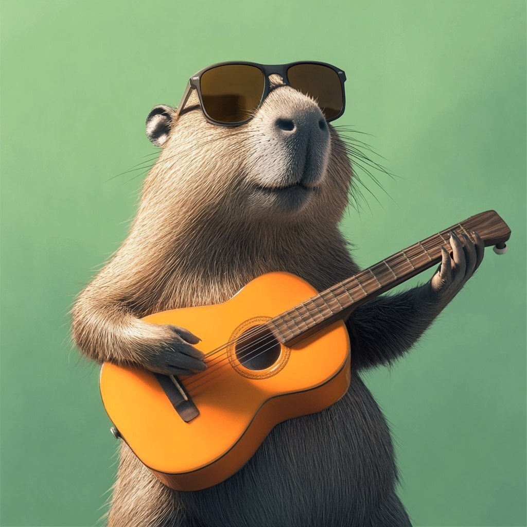 Создано на основе запроса: capybara wearing sunglass and playing guitar