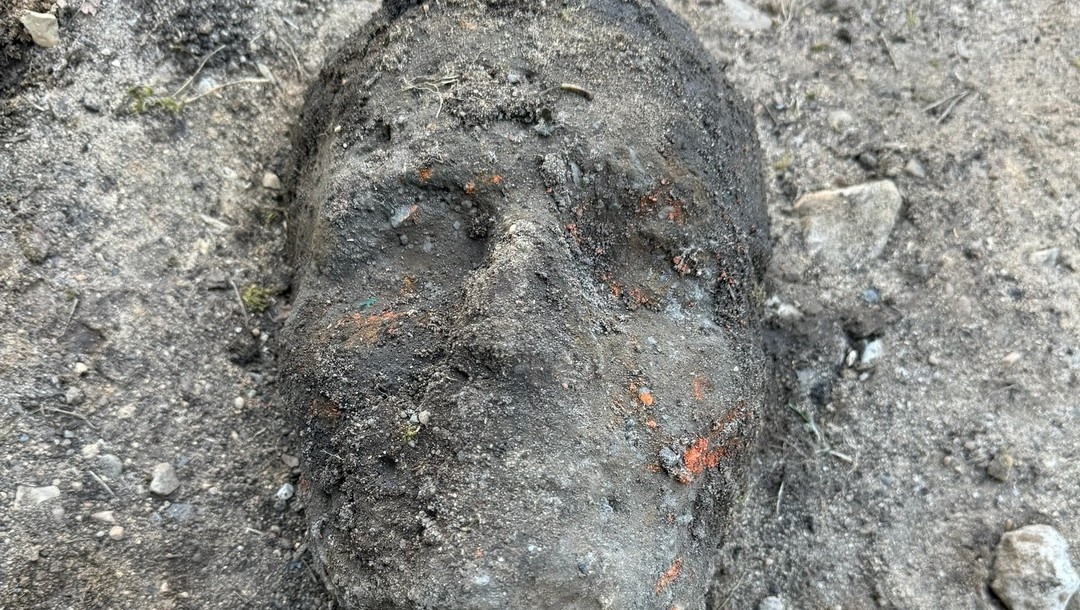 Очень необычный и даже немного жуткий предмет нашли рабочие в Ржевском округе Тверской области. Во время укладывания трубы по реке Бобровка в земле обнаружили барельеф в виде головы. О находке рассказал глава Ржевского округа на своей странице в ВК.