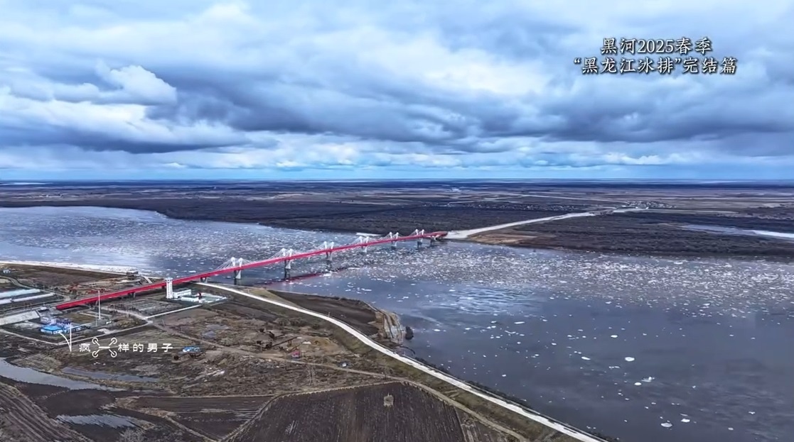 Китайский блогер снял с дрона ледоход между Благовещенском и Хэйхэ