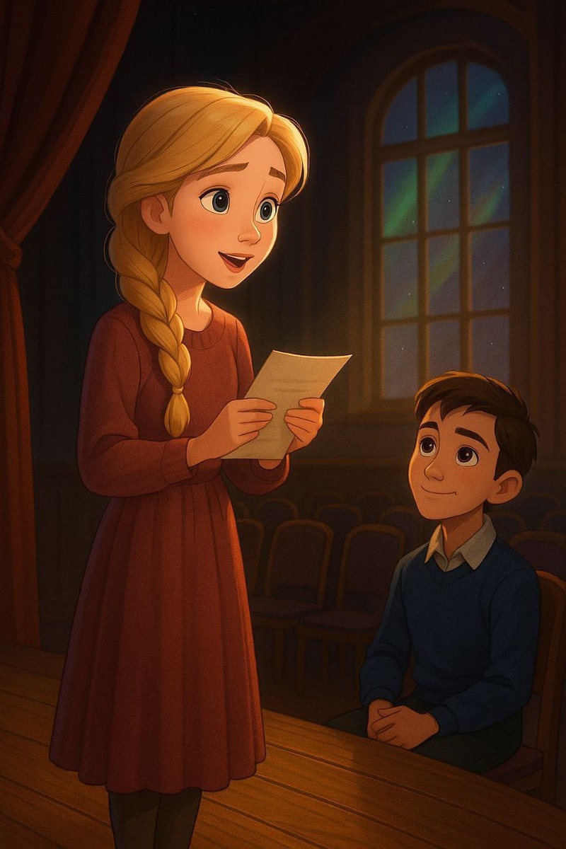 Когда в школе объявили конкурс «Голос Севера», Юлиана записалась первой. Ночью, под танцующие огни за окном, она писала стихотворение — о мальчике, чья улыбка ярче полярного сияния, о страхе признаний и надежде, что однажды он услышит то, что нельзя сказать вслух. Его имя в стихах не звучало, но каждая строчка была о нём.