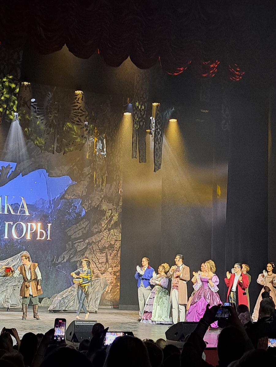 Мюзикл Глеба Матвейчука «Хозяйка медной горы» по мотивам знаменитого сборника «Малахитовая шкатулка» Павла Бажова. Уральские сказы - одно из любимых произведений моего детства. Потом, когда повзрослела, влюбилась еще в иллюстрации Вячеслава Назарука. Ставки были очень велики. Поэтому, если честно, то я намеренно снизила ожидания, чтобы не разочароваться. Как оказалось, совершенно напрасно. Спектакль оказался сказочно красивым, поставленным с царским размахом и погружающим в атмосферу волшебных самоцветов. Особенное спасибо хочется сказать композитору Глебу Матвейчуку за музыку, потому что она полностью передала эмоциональное состояние персонажей на сцене. Зритель получает то порцию адреналина во время тревожных событий, то восхищение от красоты происходящего на сцене, то заражается юмором от вида интересной парочки на сцене. А еще хочу сказать, как это было красиво. Великолепно поставленная хореография от Виктории Гончаровой и Искандера Фахрутдинова (хореографическая группа ФЦ «Мо