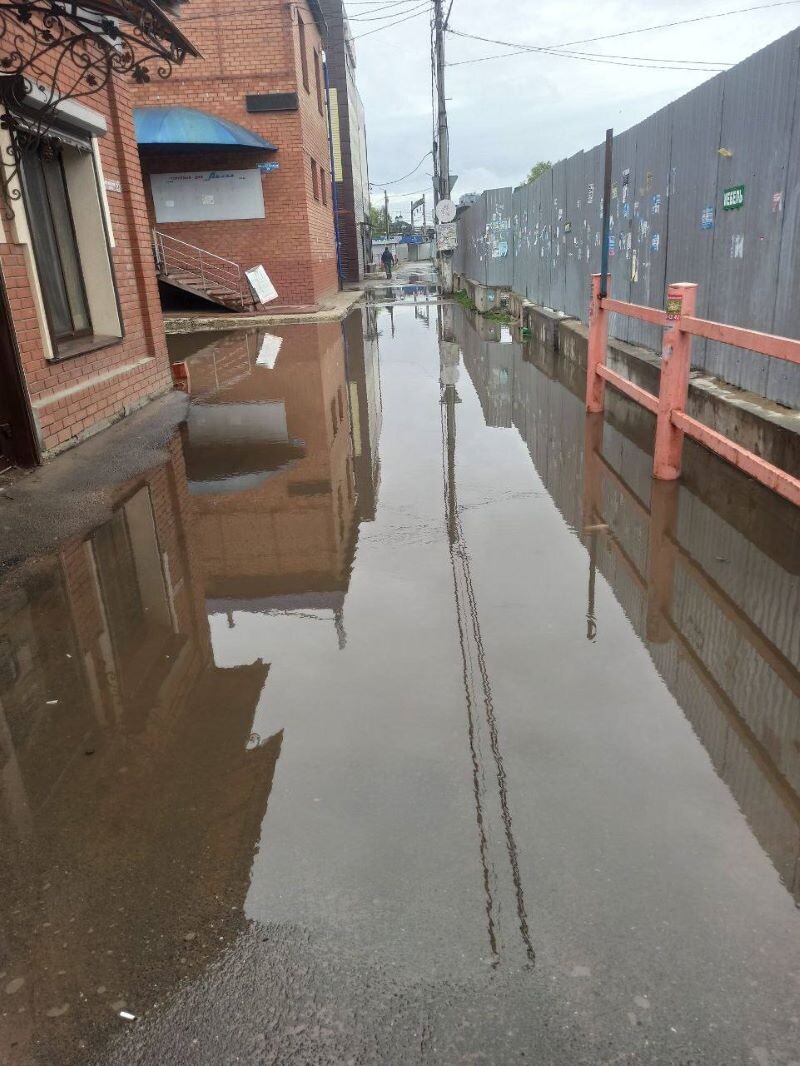 Сызрань ждет несколько дней дождей, но уже сегодня жители и гости города испытывают сложности на пути к железнодорожному вокзалу «Сызрань-1». К подземному переходу не добраться со вчерашнего вечера из-за подтопления после выпавших осадков. Единственный путь с улицы Московской, узкое место, между строениями и забором топило еще в марте, когда началось активное таяние снега. Тогда стало ясно - воде отсюда самостоятельно не уйти. Мешает забор, которым обнесена стройка путепровода. Для решения проблемы в марте сюда периодически направляли бойлер, а воду спускали в ливневку неподалеку, в районе временной разворотной площадки пассажирских автобусов. Горожане сообщают, что проблема возникла снова - к подземному переходу главного вокзала Сызрани сегодня можно добраться только вплавь. Материал на сайте «маленькая Сызрань»