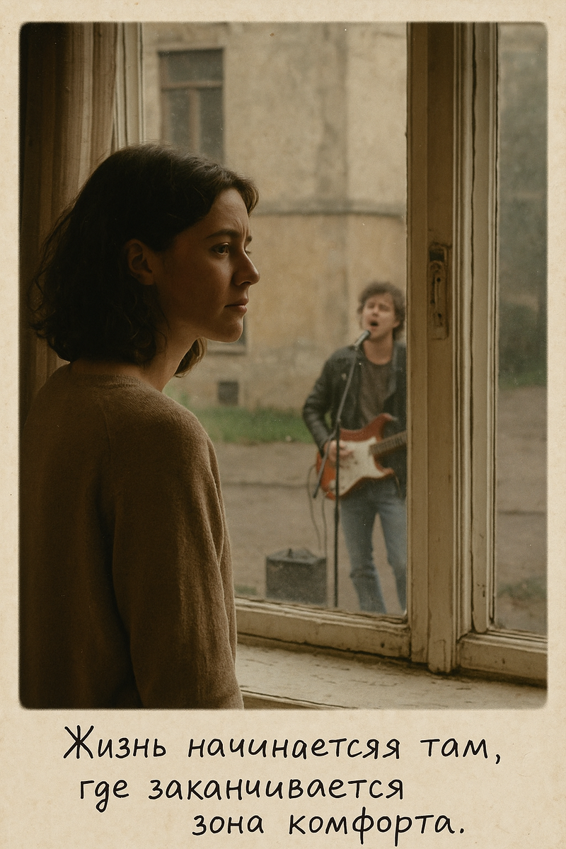 Но стоило мне подумать, что всё наконец под контролем, как... началось. Сначала глухой бас, потом гитара, а затем — вокал. Фальшивый вокал, который словно злая шутка проник сквозь тонкие стены моей новой квартиры. Я кинулась к окну — и увидела Егора. Парня, которого я сразу занесла в категорию "музыкальный бардак".