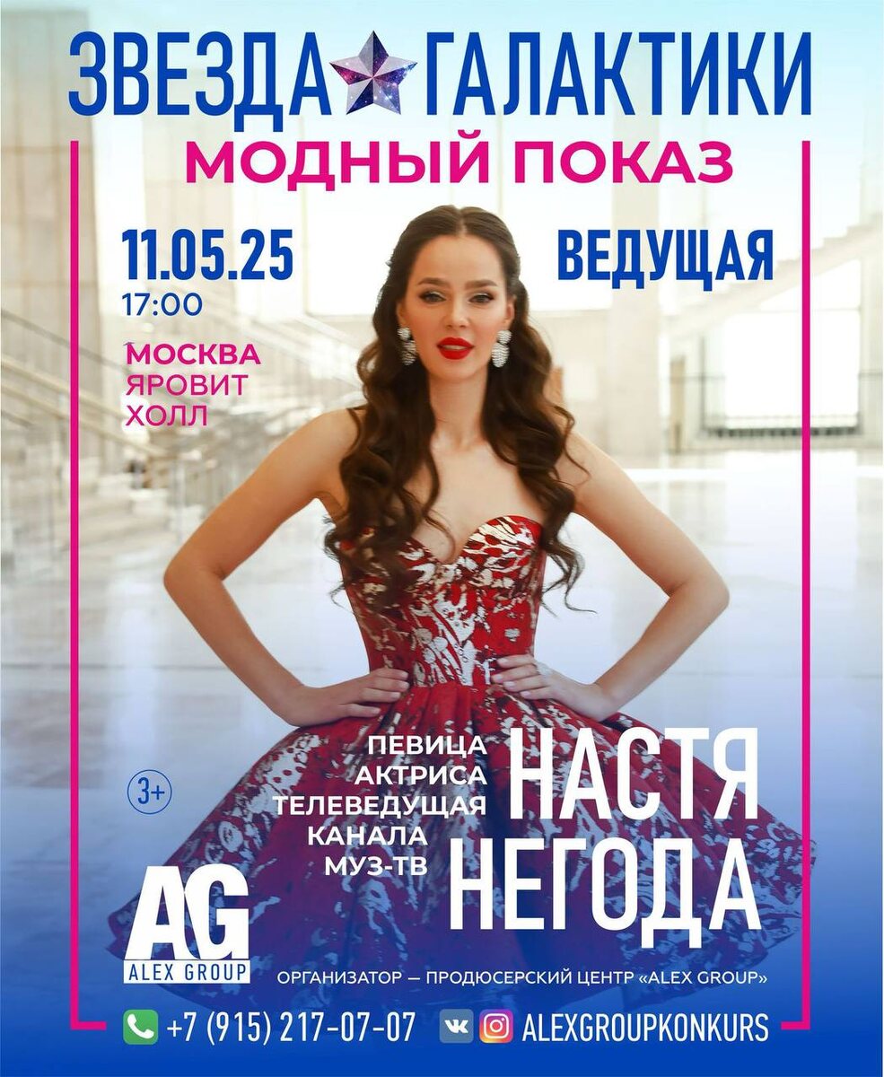 💥11 мая 2025 в Москве пройдет грандиозное шоу Модный показ ЗВЕЗДА ГАЛАКТИКИ 🌟💫 🎥 мероприятие состоится на одной из самых известных digital площадок Москвы - зале Яровит Холл на Якиманке, где пройдут съемки проекта - Модный показ "ЗВЕЗДА ГАЛАКТИКИ". 📺Трансляция телепроекта Модный показ "Звезда Галактики" состоится 1 июня (в День защиты детей) на интернет-ТВ канале "Алекс Групп ТВ": www.tv-stars.ru 🚀Есть несколько причин стать участниками этого яркого Fashion события: ✨Уникальный шанс заявить о себе, показать свою харизму, уверенность и профессионализм широкому кругу зрителей - от известных блогеров и скаутов до СМИ со всей страны! 👗Возможность поработать с популярными дизайнерами и приобрести понравившиеся Вам луки после показов; 🎭Репетиции и постановка показов профессиональным режиссером - постановщиком и известной моделью Снежаной Шепталиной; 🎸Зажигательная музыкальная программа, фото со звездами и блогерами с миллионной аудиторий; 📸Яркие, профессиональные фотогр