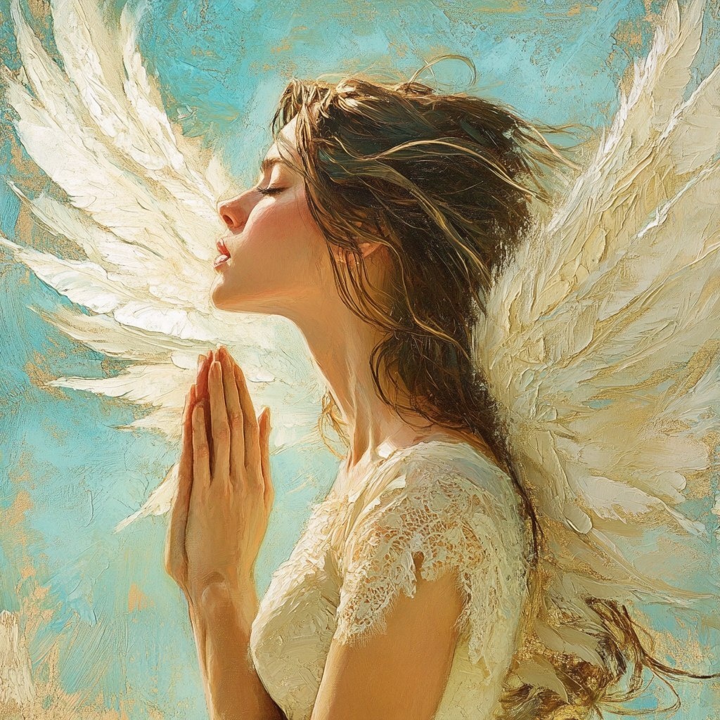 Создано на основе запроса: a profile of a woman, beautiful image. She prays hard. Wings wrap around her like a hug. She prays for joy and for peace like a river within her soul. --- Автоперевод: Профиль женщины, красивое изображение. Необычно вышло? 🤔 https://dzen.ru/id/65c0c65c86e4f837c27b24d7 #ИИ #AI #нейросеть #midjourney #art