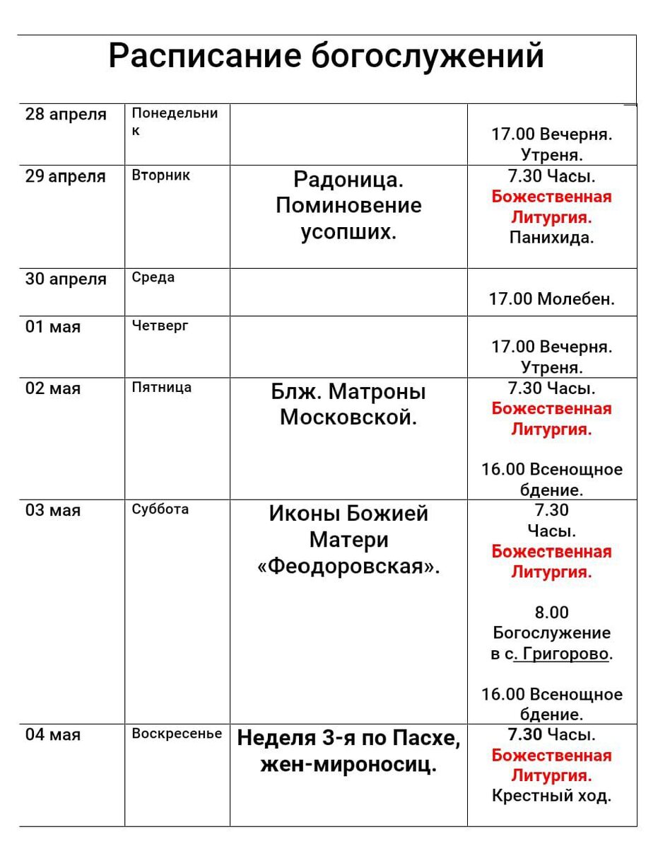 Наше расписание. Может кому пригодится.