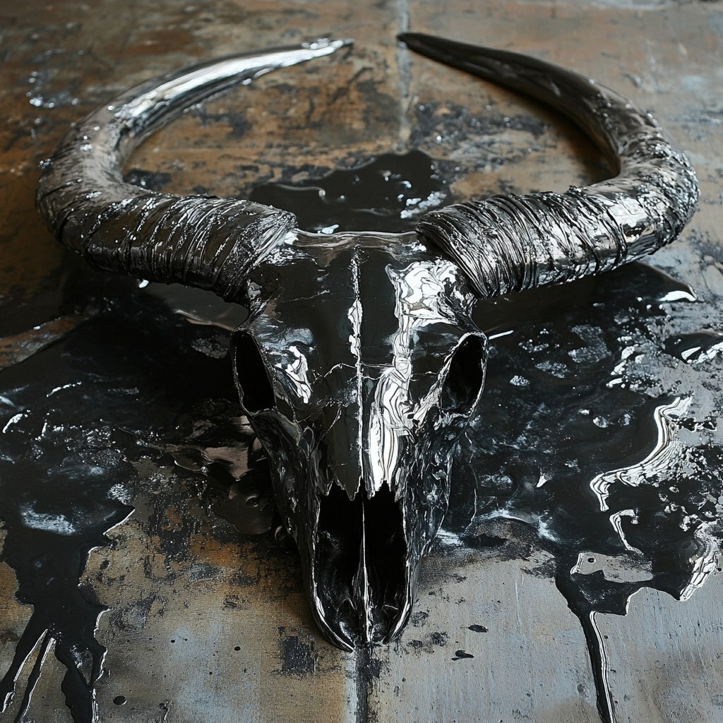 Создано на основе запроса: long horn skull, melting Liquid Metal
