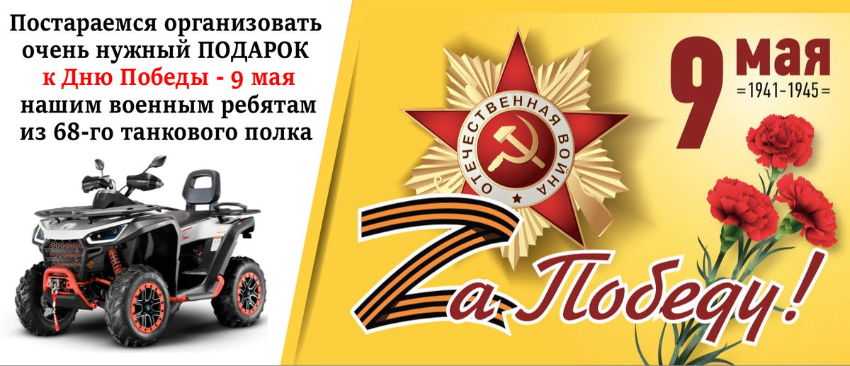 Поступило предложение - попробовать успеть собрать деньги на так нужный нашим военным ребятам (из 68-го танкового) квадроцикл (ссылка) до 9 мая включительно. 🙂 Непростая задача, но вдруг получится. 🙏 Да и символично будет - это ж будет и наша маленькая "тыловая" победа в этот важный день - 9 мая. Заодно и поздравим наших дорогих ребят, вручив им ПОКА виртуальный подарок, который превратится в реальный, когда будет нужная сумма. 🙂 Попробуем? ❤️ Цена квадроцикла: 781200 руб. Копилка "Донбасс" или по номеру +79779703332 (Сбер, Тбанк, Озон). Пометку можно не делать, так как других сборов нет. Но кому удобнее с пометкой, то можно что-то из слов "помощь", "ребятам", "Донбасс". Это на случай, если банк какой решит заблокировать карту, я смогу дать ссылку на эту статью и объяснить - ЧТО это за суммы и на какую именно цель/задачу. Огромное всем спасибо за помощь нашим ребятам. 🧡 💥 Об авторе блога - ЗДЕСЬ