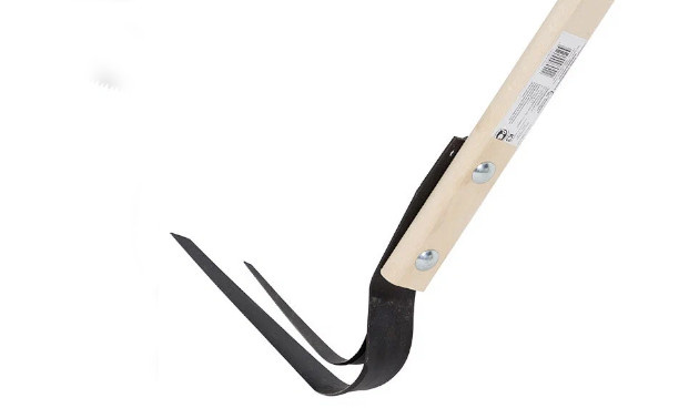 Этот плоскорез внешне похож на кочергу – к рукоятке прикреплена металлическая скоба с плоским заточенным лезвием. Основная его цель – полоть сорняки. И делает он это гораздо эффективнее прочих полольников. Мотыга, к примеру, сшибает у сорняков только верхушки, а корневища остаются в земле и очень скоро трава отрастает снова. А плоскорез буквально вгрызается в почву и подрезает корни на глубине до 5 – 10 см. Острый кончик плоскореза позволяет выпалывать даже те сорняки, которые растут очень близко к культурным растениям.