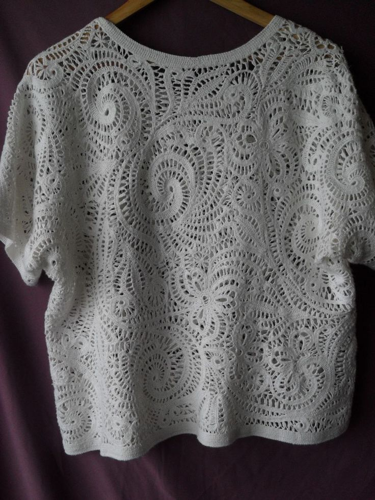 Сегодня у меня для вас порция нежности. Такую блузку повторить невозможно. Это не сможет сделать даже автор изделия (увы, кто он - не знаю). Но связать что-то подобное очень трудно. Разве, кто вяжет ирландские кружева, может справиться. Но это не ирландское кружево, лучше всего эту технику можно назвать как "нерегулярное вязание крючком". Самое трудное здесь связать плоское полотно, чтобы нигде не пузырилось, не шло волнами... И вписать это великолепие в нужную форму. Снимаю шляпу перед автором! Зацепил меня также вот этот джемпер: Здесь, конечно, только кусочек джемпера, и поиск по картинке ничего не дал. Сам джемпер связан столбиками с накидом, но вот рукав! Впрочем, фото крупное, схему можно разобрать. Или связать, например, по такой: Думаю, можно использовать одну из сеточек: Ещё несколько схем посмотрите в ТГ-канале Вязальный портал (https://t.me/knitcroch/37/3962) Очень понравилось это пончо, мне кажется, что оно для лета будет удобным. Думаю, тут всё понятно без описан