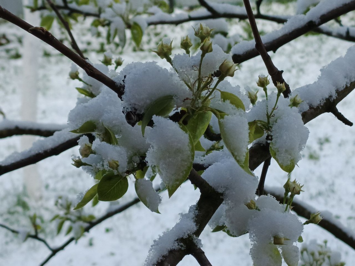 Зима ❄️ вернулась. Груша в цвету.