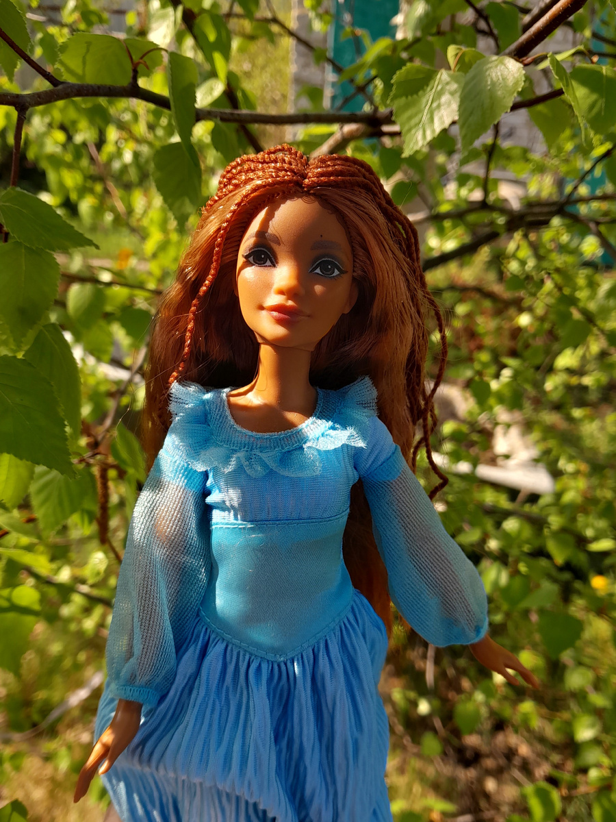 Поселилась у меня: Узнав, кто играет в фильме роль моей любимой с детства Ариэль, я опешила, как и многие. Потом был гнев, торг (на этой стадии я решилась посмотреть фильм) и принятие. Мне, в общем, понравилась игра Холли Бейли. Конечно, она не похожа на мультяшную Ариэль, но улыбка, мимика и общий вайб, как модно сейчас говорить, совпали. Да и поёт хорошо) А ведь на бедную актрису обрушилось столько хейта, особо умные ей и лицо в фотошопе отбеливали, но она с достоинством отвечала (или не реагировала) на нападки. Я читала, что для неё самой было неожиданностью пройти этот кастинг, ну что ж, такова была политика Дисней в тот момент, не отказываться же... В принципе концовка фильма даёт общее понимание того, что хотел сказать автор - "ребята, давайте жить дружно". А давайте)) Куколка мне понравилась сразу. Эти интересные волосы и милое личико. Сначала видела её в продаже в основном в виде русалки, видела гибриды. А на wb встретила сразу на "человеческом теле") Платье красивое, сандалии