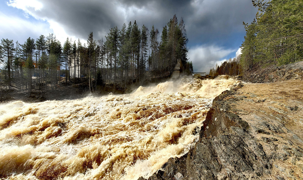 Каждый год жители и гости Карелии приезжают в поселок Гирвас в Кондопожском районе, чтобы полюбоваться водосбросом на водопаде Гирвас. Первый водосброс состоялся и этой весной. В 1930-х годах русло реки Суны перекрыли, создав Гирвасское водохранилище. Из-за этого практически исчез и водопад Гирвас, теперь он возрождается лишь на время — в моменты сброса воды. Высота водопада во время сброса воды достигает 30 метров. Мощь и рев водопада впечатляют и оставляют воспоминание на всю жизнь. Обычно это бывает весной, в период половодья и интенсивных дождей. Каждый год даты разные, поэтому угадать заранее сложно. В остальное время Гирвас выглядит как тонкий ручеёк, текущий по узкому руслу. Также интересно, что именно здесь выходит на поверхность древняя вулканическая порода. Здесь можно наклониться и потрогать рукой непосредственно земную кору, которая в норме скрыта осадочеыми породами. Такое в мире можно наблюдать только в Гирвасе и еще на Канадском кристаллическом щите. © «Петрозаводск гово