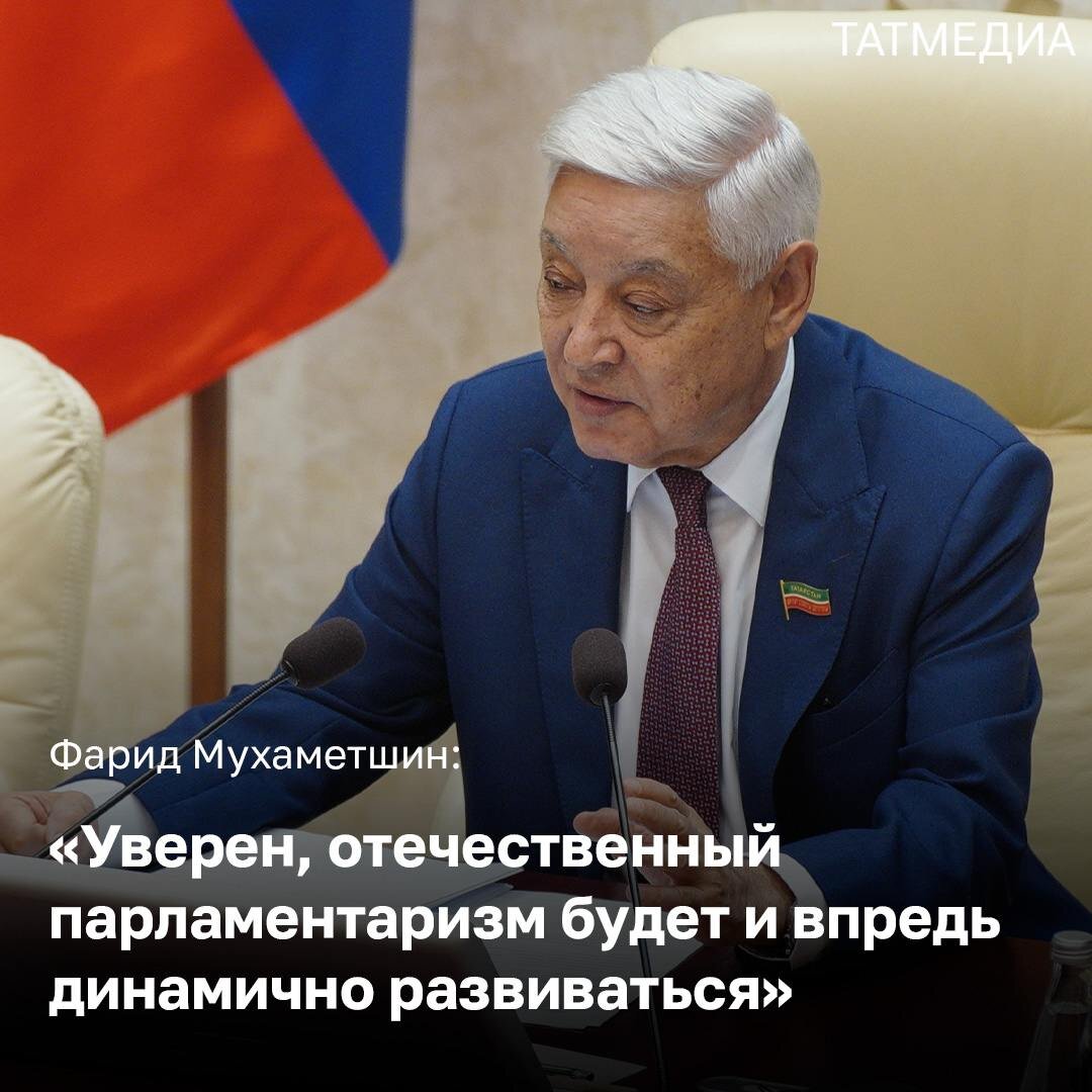 🇷🇺💼 Председатель Госсовета РТ поздравил татарстанцев с Днем российского парламентаризма Праздник отмечается ежегодно 27 апреля. «За три десятилетия татарстанским парламентом пройден большой путь. В тесном взаимодействии с федеральным центром, через конструктивный диалог и разумные компромиссы удалось сформировать стройный законодательный каркас, заложить крепкий фундамент для устойчивого социально-экономического и культурного развития республики, упрочения межнационального мира и межконфессионального согласия. Всё это легло в основу особой «модели Татарстана», которая позволила нам стать одним из передовых и динамично развивающихся, опорных регионов страны», – заметил Фарид Мухаметшин. По его словам, неизменными чертами депутатского корпуса республиканского парламента все это время были и остаются открытость, высокий профессионализм, ответственность в принятии решений, прямое взаимодействие с избирателями, институтами гражданского общества, всеми ветвями и органами власти. «Прод