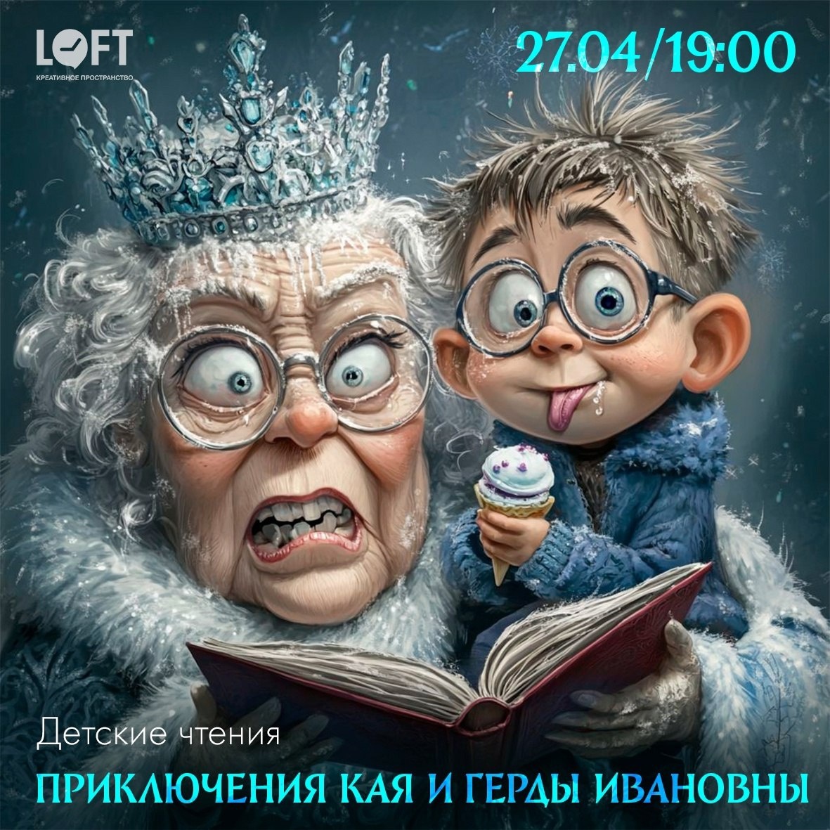 Детские чтения «Приключения Кая и Герды Ивановны» 📖 ❄️ «Теплее не станет, пока Кай не растает!» 🪄 На сцене — бабушка с внуком, которые оказываются в истории: злой тролль, зеркало, кусочек льда в сердце. Внук становится Каем, бабушка — Гердой. Волшебные сани, ворон, разбойница, ледяная королева — всё это на ваших глазах! В финале — весёлый интерактив: игра в снежки, напоминающая, что зима — это приключения, фантазия и дружба 💫 📆 27 апреля в 19:00 📍 Креативное пространство Лофт 🎟 Билеты Оставайтесь с нами #НашаПсковскаяобласть