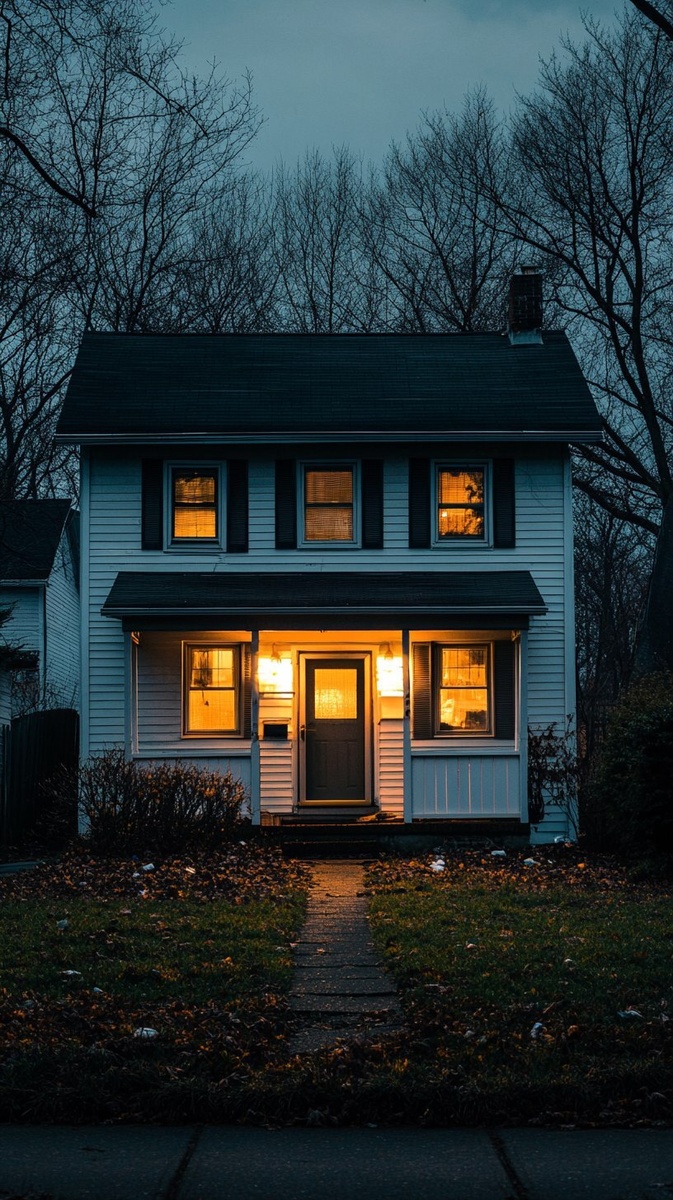 Создано на основе запроса: A suburban house with no visible security cameras, wide open windows, unlocked front door, packages left