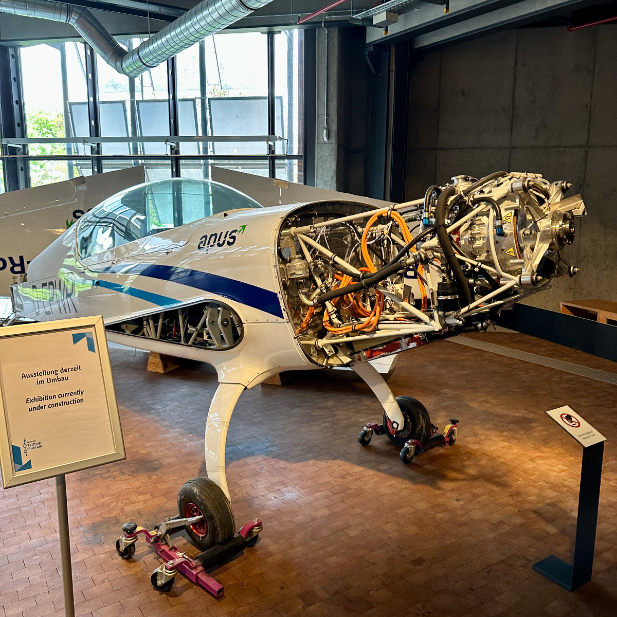 Из экспозиции Немецкого технического музея в Берлине выставлен весьма интересный Extra 330LE — одноместный самолет, оснащенный электрическим двигателем Siemens, мощностью 260 кВт. 23 марта 2017 года самолет установил два мировых рекорда: на аэродроме Динслакен-Шварце-Хайде достиг максимальной скорости около 340 км/ч на расстоянии трех километров, а 24 марта 2017 года Extra 330LE стал первым в мире электрическим самолетом, который поднял в небо планер! Самолет, как и многие экспонаты в музее представлен таким образом, что можно рассмотреть всю его техническую «начинку».