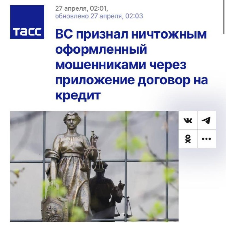 ⚠️Верховный суд РФ постановил признавать недействительными кредиты, оформленные мошенниками
