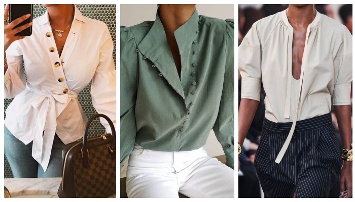 Сегодня вас ждёт обзор шикарных моделей блуз. С ними вы сможете создавать потрясающие образы как на каждый день, так и для особых случаев. Встречайте модный тренд — белоснежная блуза на запах, с акцентными рукавами и контрастными пуговицами. Эта модель станет жемчужиной вашего гардероба благодаря поясу, который изящно подчёркивает женственные изгибы фигуры. Рукава буфы по-прежнему в моде! Обратите внимание на эту великолепную блузу с воротником-стойкой и изящными кружевными деталями. Пышные рукава придадут вашим образам нарядность и элегантность. На очереди еще одна весенняя новинка, а именно блуза с пышными рукавами в полосатый принт. Глубокое декольте приковывает к себе все внимание. Чтобы образ выглядел завершенным, его стоит дополнить многослойной цепью. В приоритете будут, как вертикальные, так и горизонтальные полосы различных оттенков, которые отлично смотрятся на белоснежных блузках. Белоснежные асимметричные блузы смотрятся эффектно даже в одном тандеме с классическими брюками