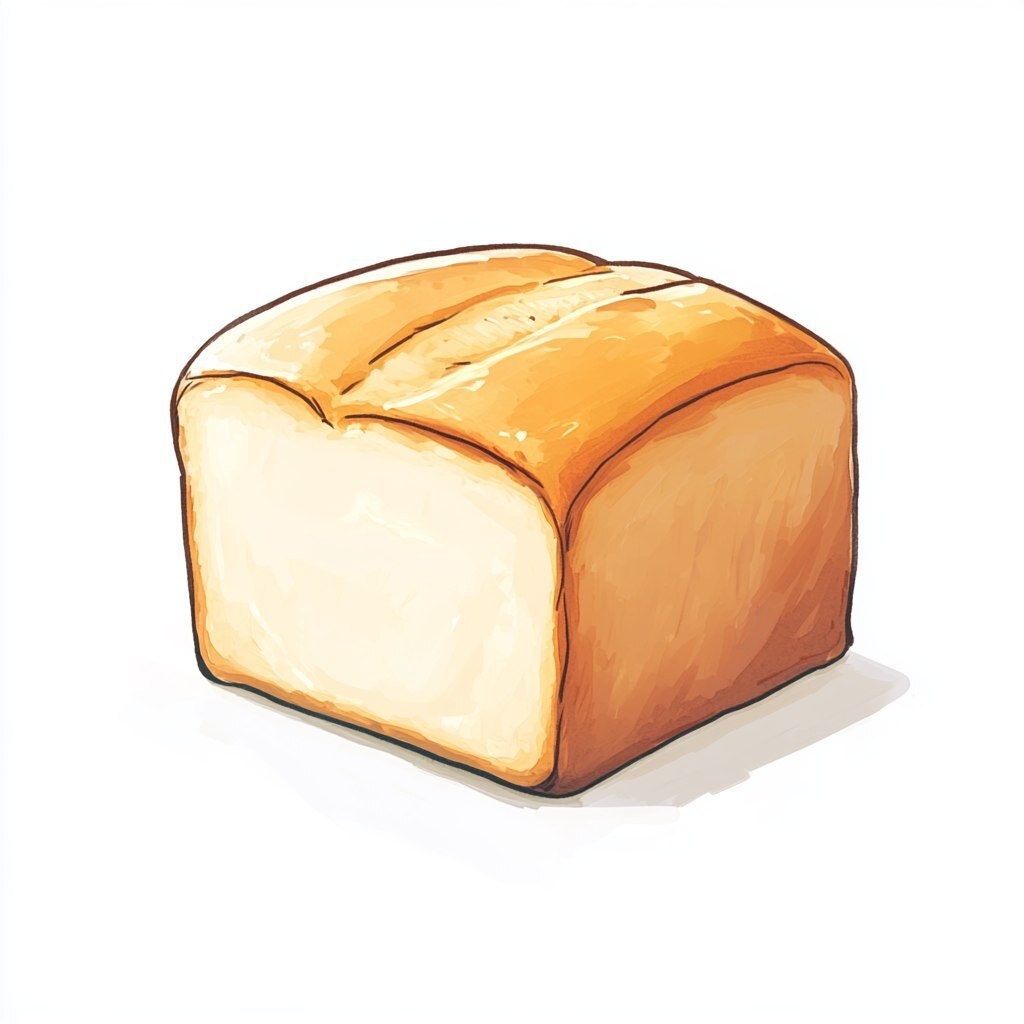Создано на основе запроса: Anime-style illustration of a loaf of fluffy Japanese bread (shokupan) on a clean white background