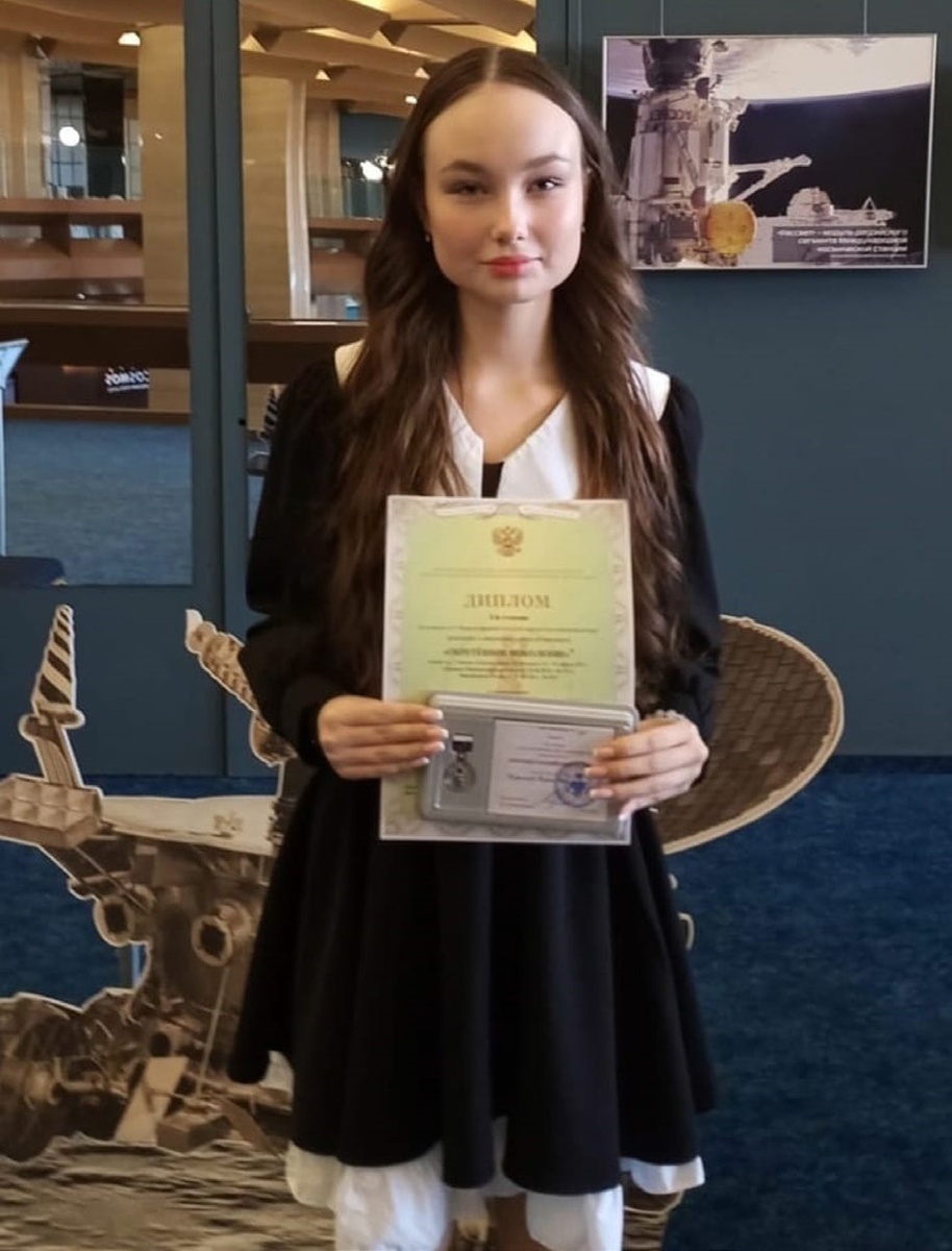 Школьница была награждена дипломом 1-й степени и медалью «За успехи в исследовательской и проектной деятельности «Будущее Российской науки», а ее наставник – учитель русского языка и литературы Тамара Кирпичева – дипломом за успехи.