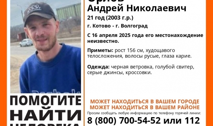 Андрей Орлов 2003 года рождения пропал еще на прошлой неделе. С тех пор его местоположение остается неизвестным. К поискам без вести исчезнувшего мужчины уже подключились волонтеры поисково-спасательного отряда «ЛизаАлерт» по региону. В социальных сетях добровольцы распространили ориентировку с приметами пропавшего. В ней указано, что Андрей Орлов может находиться в Котово или Волгограде. Приметы пропавшего: рост 156 см, худощавое телосложение, русые волосы и карие глаза. Когда его видели в последний раз, он был одет в черную ветровку, голубой свитер, джинсы серого цвета и кроссовки. Жителей Волгоградской области, которым известно местоположение пропавшего человека, просят обратиться на горячую линию отряда по номеру 8 (800) 700-54-52 или позвонить по телефону 112.
