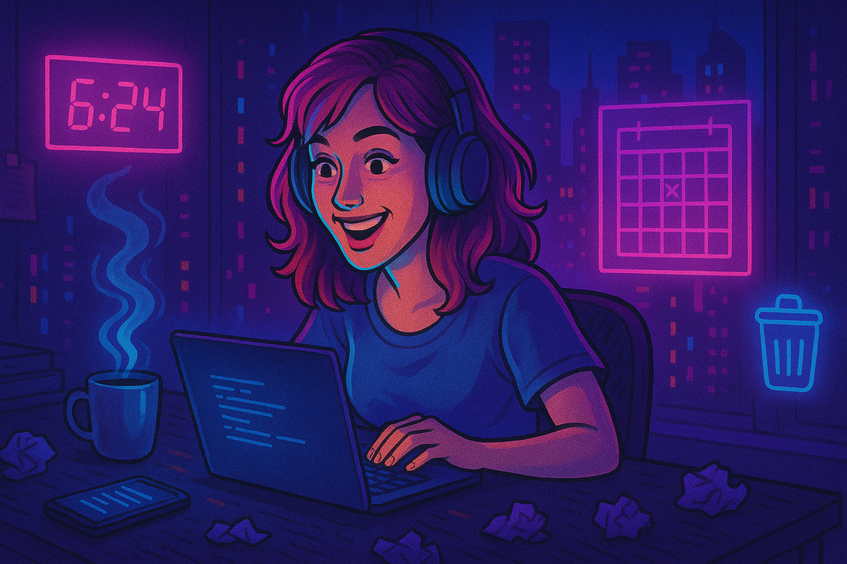 Привет, друзья! Сегодня хочу рассказать вам немного о себе — о том, как проходит обычный будничный день человека с удаленным форматом работы. Вот эти видео из социальных сетей, где девушки встают в 5 утра, пишут дневник благодарности, дышат маткой, делают себе полноценный завтрак, бегают в зале и потом часов в 10-11 приступают к работе — мало имеют общего с реальностью. Не спорю, возможно у кого-то так жить действительно получается. Но из тех кого знаю я — ни у одного. Скорее это выглядит так: проснулся, умылся и сел работать. Повезло, если смог встать пораньше и позавтракать. Писать какой-то там дневник благодарности? Нет. Скорее пить кофе и смотреть в окно, пытаясь понять, ты уже проснулся или все еще спишь. А если у вас еще есть дети — какое дыхание маткой, тут бы легкими хотя бы подышать. Принятия, что рано вставать. Подъем начинается с 3 будильников: Скоро добавлю головоломку — чтобы отключить будильник, надо решить квест. Я люблю свои работы, но утро мне всегда давалось тяжел