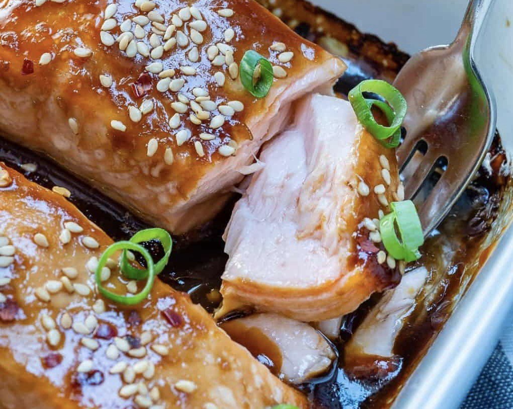 Ищете быстрый, но эффектный рецепт для ужина? Лосось в соусе терияки — идеальное решение! Нежное филе с глянцевой карамельной глазурью, приготовленное в духовке, сохраняет сочность и требует минимум усилий. ✔ Готовится быстрее, чем доставка еды — всего 20 минут