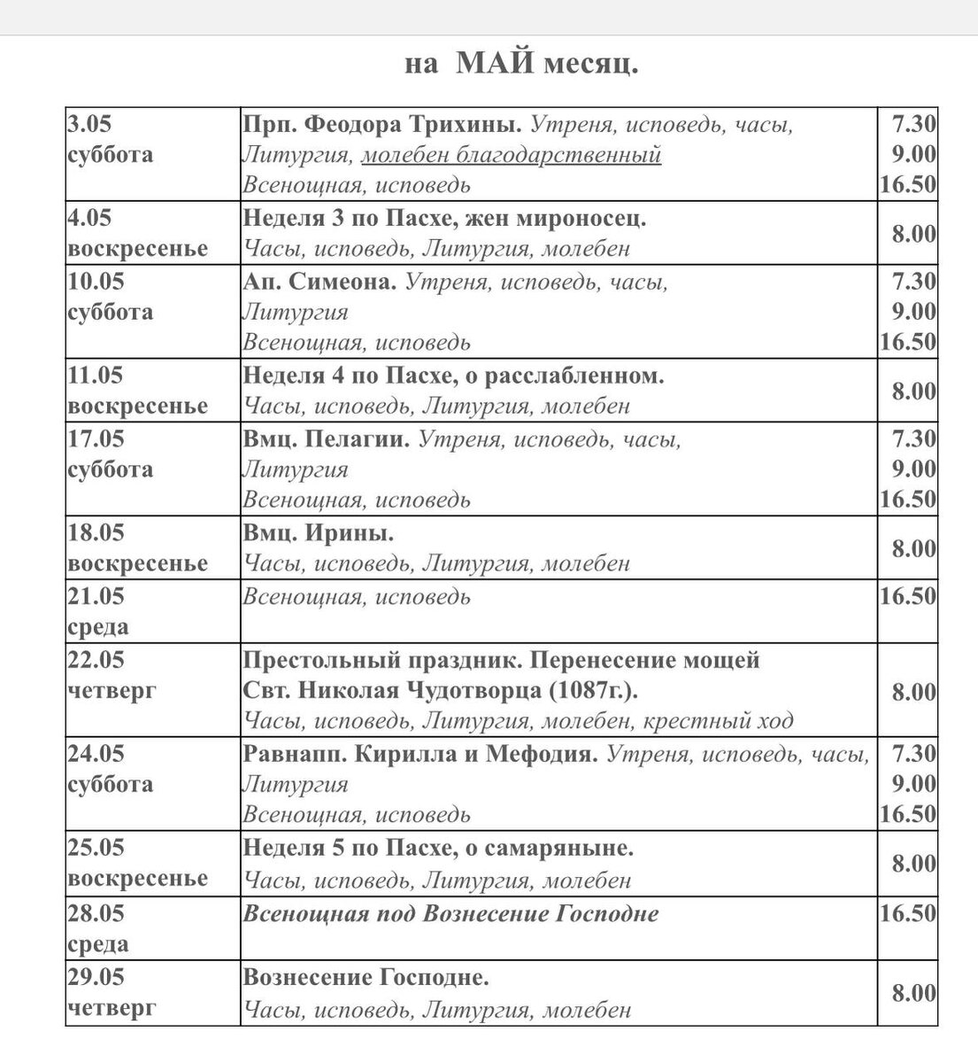 #расписание богослужений на 🐝 МАЙ 2025 ХРАМ ОТКРЫТ С 9.30 до 16.00