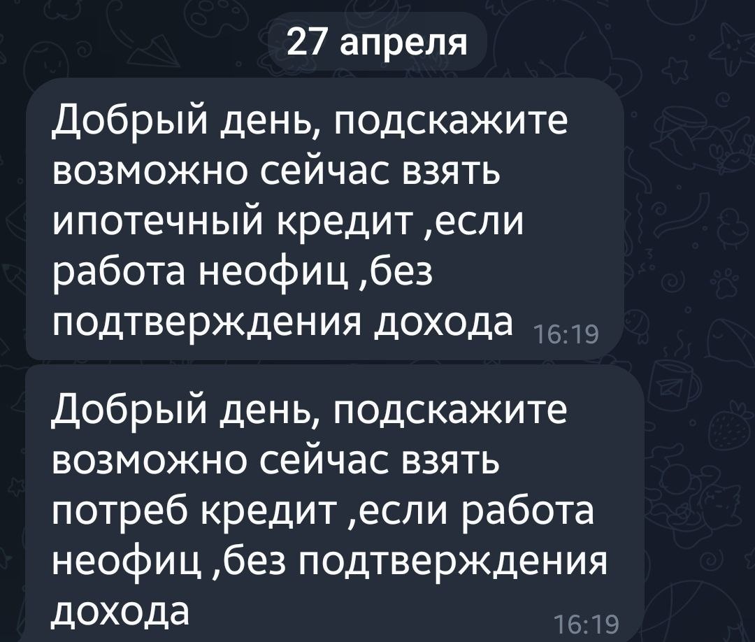 Друзья мои, пока мы с семьёй отдыхаем и болеем за школьную футбольную команду сына, жизнь на рынке кредитования не останавливается. Вопросы идут и идут, несмотря на выходные И пожалуй самые популярные вопросы те, что выкладываю. Ответ- да, это возможно. Но очень осторожно) Самостоятельно эти вопросы почти невозможно пройти. Особенно кредит наличными. Если всё-таки нужно получить одобрение банка и подписать договор о выдаче ипотеки/кредита пишите @ipotekaprosto1. Сделаю всё в лучшем виде. А пока - отдыхать. Погода в Ростове-на-Дону огонь. Чуть ветер, ну и ладно. #Светлов #помощьвкредите #брокер #помощьвипотеке #помощьвполучениикредита #кредитныйброкер