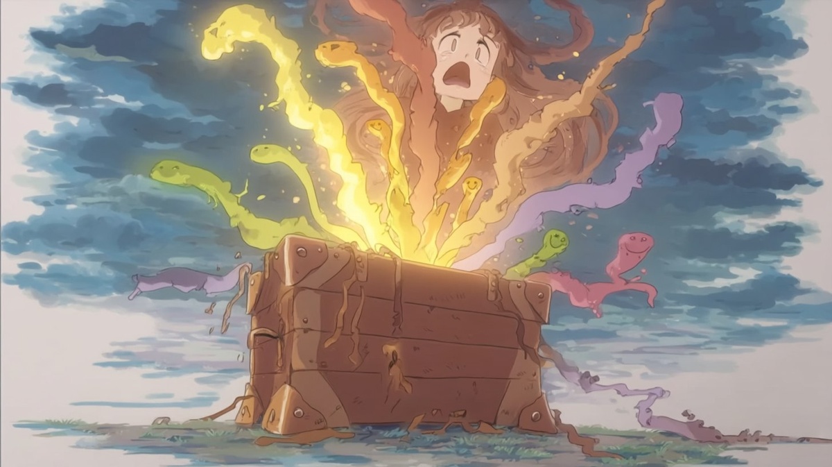 Создано на основе запроса: chaotic spirits explode from pandora's box box, animecore
