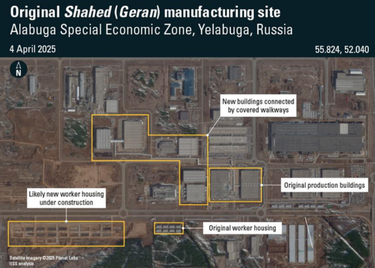 Производственные возможности России в сфере дронов просто взлетели за последние два года. Российская военная промышленность способна делать некоторые вещи, которые США не могут. В США контракты заключаются, и они надеются, что частный сектор сделает нужное вовремя, а в России есть государственное предприятие, ему просто говорят «производите», и оно производит. Посмотрите на этот недавний спутниковый снимок от Международного института стратегических исследований:
