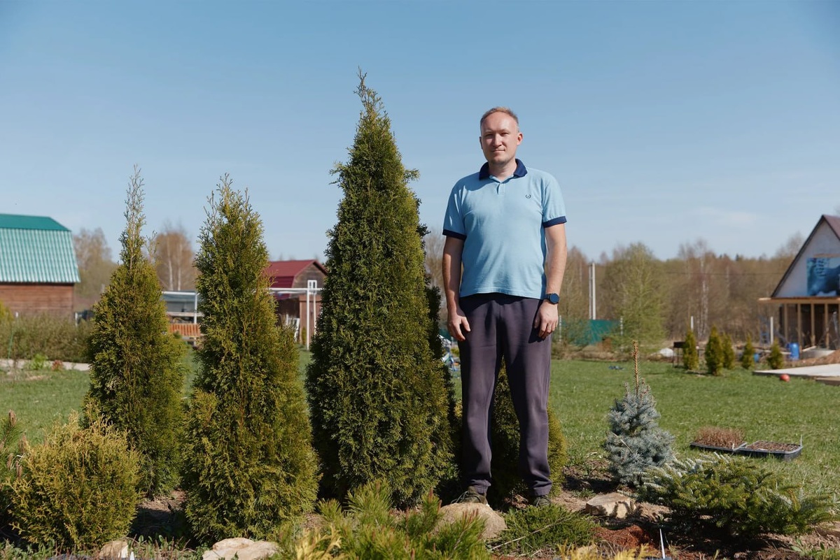 Роман и Мария три года содержат питомник хвойных растений на своем участке в Подмосковье