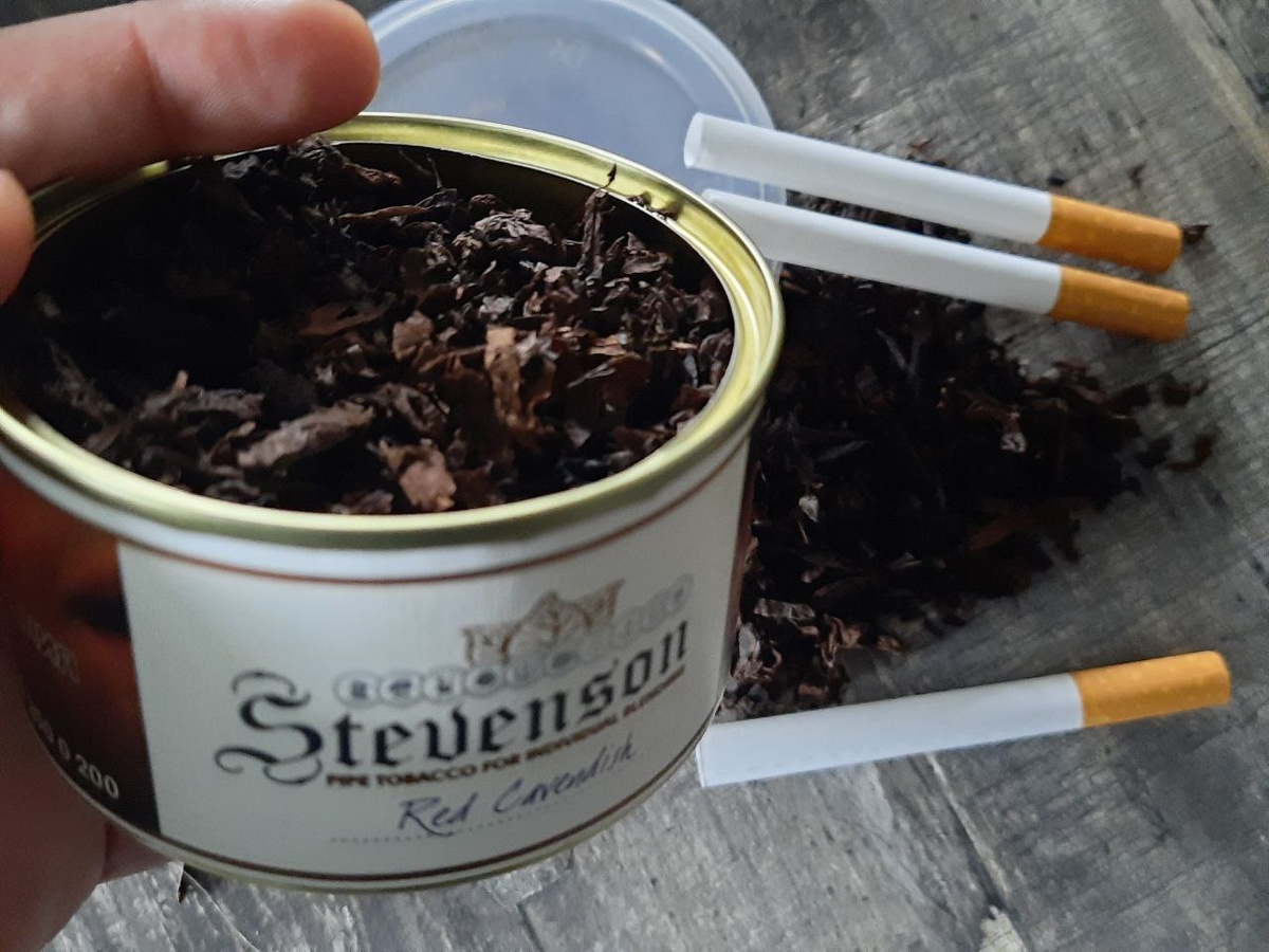 Как я уже рассказывал, время от времени я добавляю в смеси развесных табаков определенные табаки-пряности. Из относительно бюджетных предпочитаю трубочную смесь для блендинга Stevenson, которую производит Погарская сигаретно-сигарная фабрика. И чаще всего мой выбор падает на Red Cavendish. Внимание! Данная публикация предназначена для совершеннолетних граждан – прежде всего, для тех, кто курит. Я не рекламирую табачную продукцию и продавцов, и не пропагандирую курение. Записка основана на личном мнении и носит ознакомительный характер. Курение вредит вашему здоровью! Вот и сегодня, воскресным днем, я решил вскрыть очередную банку «Красного Кавендиша», чтобы дозаправить смесь для гильз, созданную на основе табаков и мешек от разных поставщиков. Вроде бы неплохая смесь получилась, но изюминки не хватало. На мой взгляд, Stevenson Red Cavendish прекрасно подходит для внесения такой изюминки. Впервые я познакомился с трубочным табаком Stevenson пять лет назад. Стоил он 350 рублей за банку в