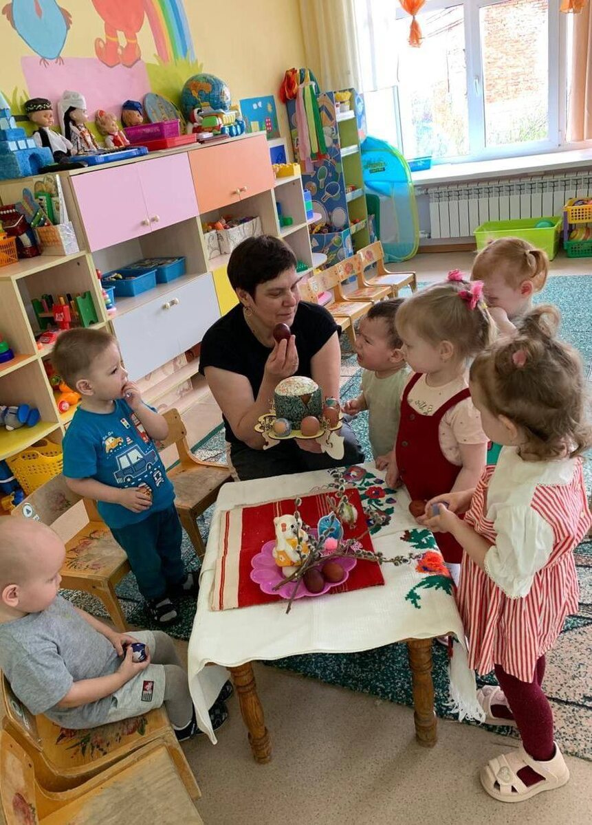 🏡Мамадыш районының 12нче «Ләйсән» балалар бакчасында тәрбияче Римма Кузнецова иң кечкенәләр төркемендә эшли😍 Нәниләрне дөрес итеп сөйләшергә, үз фикерләрен әйтә белергә өйрәтү, аларның сүз байлыкларын арттыру – балалар бакчасының төп бурычларыннан берсе булып тора❤️ 🐣“Без балалар белән һәр бәйрәмне билгеләп үтәбез. Бәйрәм атрибутлары, йолалары белән таныштырабыз. Быел Бөек Ватан сугышында Җиңүнең 80 еллыгы билгеләп үтелә. Шушы уңайдан,безнең балалар бакчасы «Җиңү тәрәзәләре» Бөтенроссия акциясенә кушылды. Без дә үз төркемебез бүлмәсендәге тәрәзәләрне нәниләр белән бергәләп оригами ысулы белән кәгазьдән тынычлык кошлары – күгәрченнәр ясап бизәдек. Әлеге рәсемнәрне матурлап тәрәзәләргә беркеттек. Хәзер урамнан узганда кешеләр һәрвакыт балалар бакчасы тәрәзәләренә күз сала. Шулай ук, Олы көн бәйрәме турында да балаларга аңлаттык. Күкәй ману, кулич пешерү, бәйрәм табыны төзү турында сөйләштек. Әлбәттә безнең һәр алымыбызда балаларның сөйләм телен үстерү дә беренче урында тора”, – диде