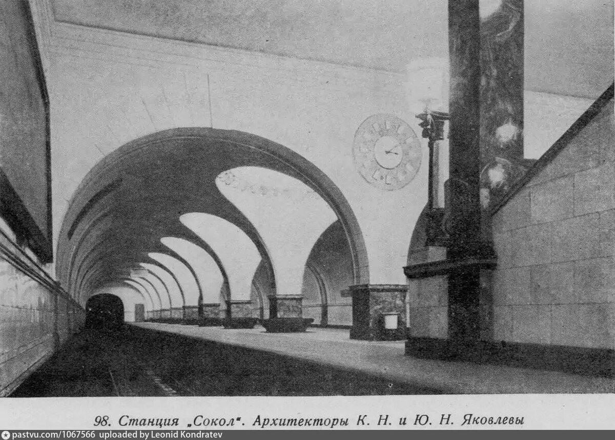 Метро «Сокол» в Москве Станция метро «Сокол» Московского метрополитена была открыта 11 сентября 1938 года в составе второй очереди по проекту братьев-архитекторов Яковлевых. За время своего существования она претерпела ряд архитектурных и декоративных потерь. Со станции исчезли часы, было изменено верхнее освещение, частично переработан рисунок пола, а также были убраны опоры фонарей-светильников с центрального спуска на платформу. Но самой любопытный утратой можно назвать питьевой фонтанчик в самом центре станции, под центральной лестницей. Хлебнули бы водицы из такого фонтанчика в летний московский зной?