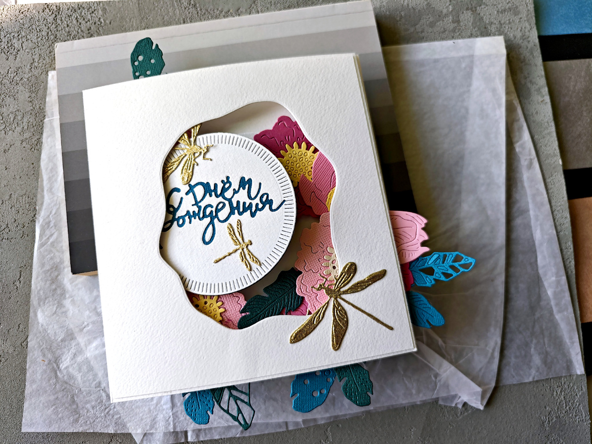 Привет! С вами Надя и немного магии! Решила исследовать незнакомый мне мир поп-ап и меня затянуло )) Целый день клеила и крутила черновик, потом еще один день собирала чистовую версию и бесконечное число раз вертела карусель цветов и перьев туда-сюда, чтобы открывалось интересно и закрывалось не менее увлекательно )) Обязательно посмотрите видео! Для открытки использовала сеты "Кроличья нора" и "Мои поздравления", а для цветочных композиций целую кучу ножей: "Я молодой тюльпан" "Душистый снег магнолий" "Стрекозы быстрыми кругами" и оба набора "Ни пуха ни пера".